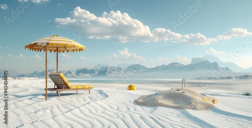 The watermark will not be included on Wall mural.: Beach umbrella with chairs on the sand - summer vacation concept - 3d rendering