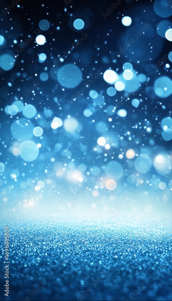 Wall mural : Beautiful abstract blue sparkle bokeh background with dreamy glow and soft illuminated light effects