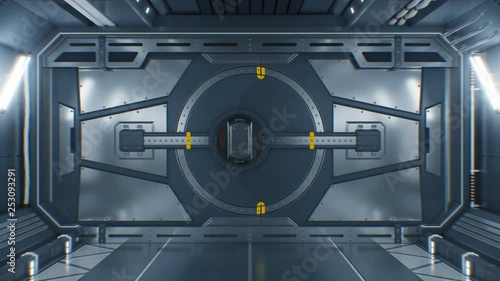 Wall mural : Beautiful abstract metal gate opening on black background - futuristic 3d animation with green screen