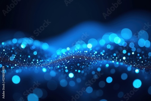Wall mural : Beautiful abstract visual of blue waves with sparkling particles in a smooth flowing pattern, captur