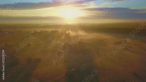Wall mural beautiful aerial shot of thick layer of fog on fields during sunrise with expanse and endless skylin - Wall murals Wall mural beautiful aerial shot of thick layer of fog on fields during sunrise with expanse and endless skylin - Wall murals