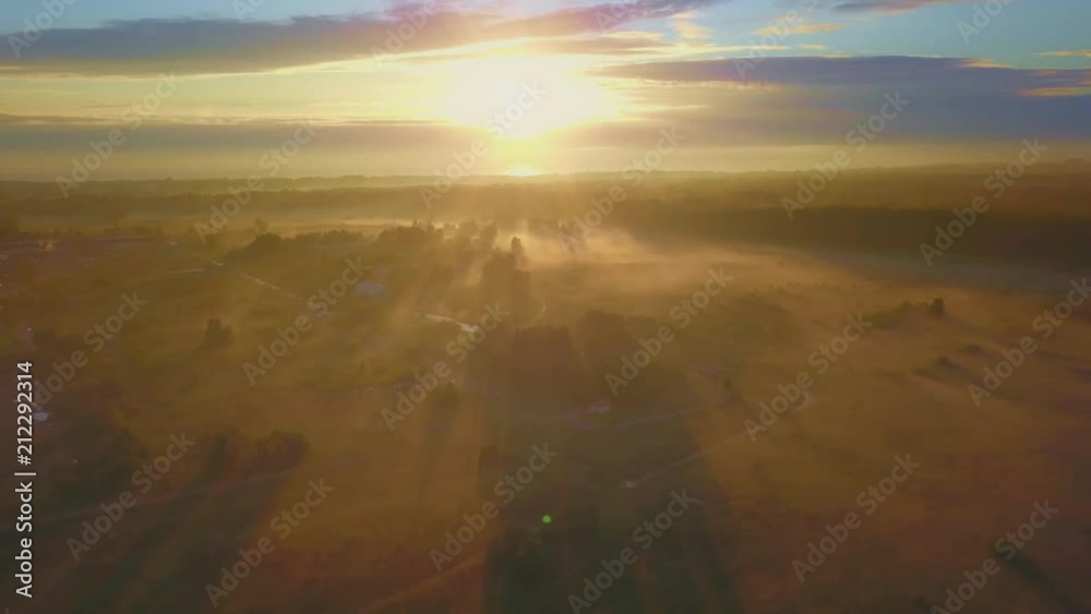 The watermark will not be included on Wall mural.: Beautiful aerial shot of thick layer of fog on fields during sunrise with expanse and endless skylin