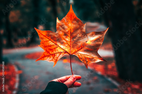 Wall mural : Beautiful autumn maple leaf on tree in park -