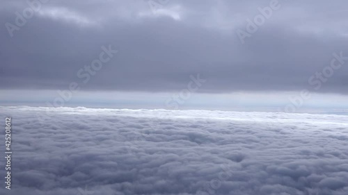 Wall mural : Beautiful blue sky above clouds with warm sunlight view from plane