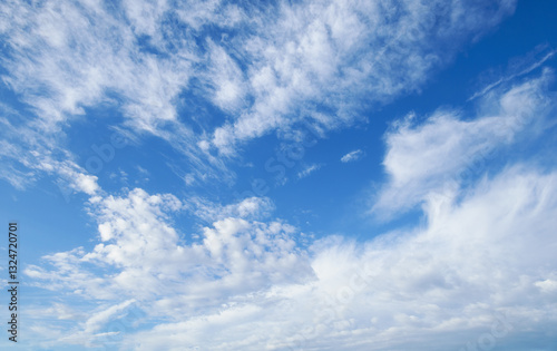 Beautiful blue sky with soft white clouds for abstract backgroundWall mural
