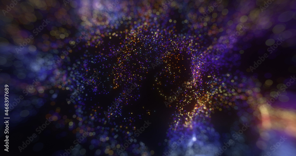 Wall mural beautiful bokeh light effects with glowing particles. abstract digital wave of particles and dots ba