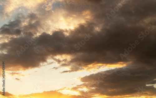Wall mural : Beautiful bright sunset sky background with clouds - evening time -