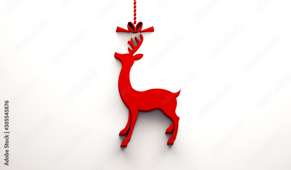 Beautiful chrismas deer ornament with ribbon - 3d render illustrationWall mural