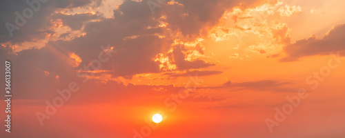 Wall mural beautiful colorful sunset sky with orange clouds. nature sky background.