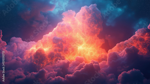 Wall mural beautiful computer-generated cloud with luminous particles floating in a dark sky backdrop
