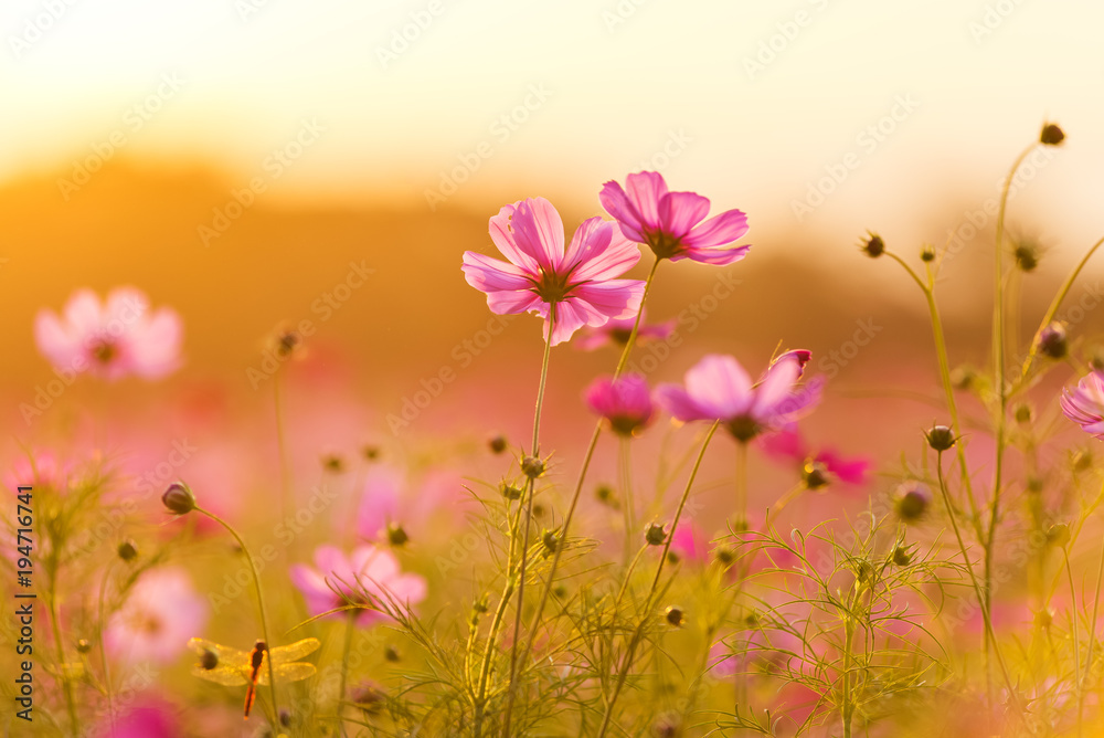 The watermark will not be included on Wall mural.: Beautiful cosmos flowers blooming in garden
