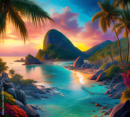 Wall mural beautiful exotic beach in bright colors abstract wavy background made with paints.generative ai - Wall murals Wall mural beautiful exotic beach in bright colors abstract wavy background made with paints.generative ai - Wall murals