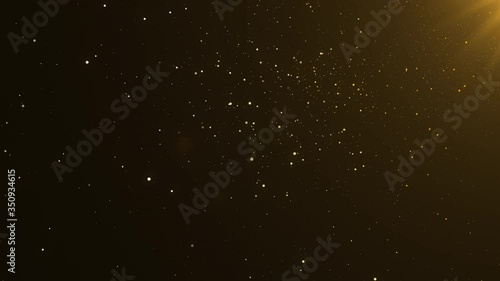 Wall mural beautiful gold shimmering particles with lens flare on black background in slow motion. 3d animation