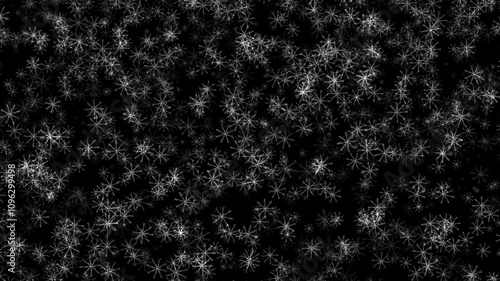 The watermark will not be included on Wall mural.: Beautiful loop falling moving white snowflakes particles animaiton on black abstract background -