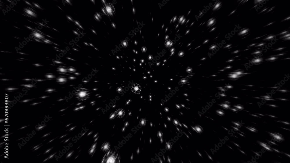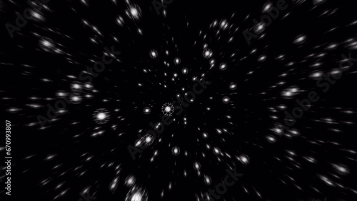 Wall mural beautiful loop falling moving white starflakes particles radial blurred animaiton on black abstract
