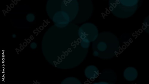 The watermark will not be included on Wall mural.: Beautiful loop floating moving big blue blurred bokeh bubbles lights motion on black abstract backgr