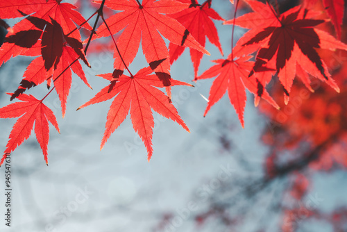 Wall mural beautiful maple leaves on the tree in autumn season.