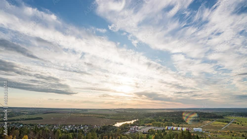 The watermark will not be included on Wall mural.: Beautiful movement of fluffy clouds with clear blue sky - the camera follows the clouds floating, aer