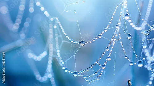 Wall mural beautiful natural background with necklace of water droplets on a cobweb in grass in spring of summe