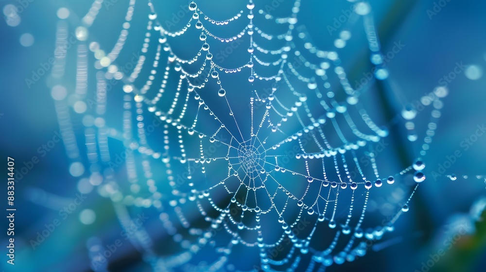 Wall mural beautiful natural background with necklace of water droplets on a cobweb in grass in spring of summe - Wall murals Wall mural beautiful natural background with necklace of water droplets on a cobweb in grass in spring of summe - Wall murals