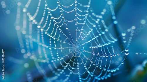 Wall mural : Beautiful natural background with necklace of water droplets on a cobweb in grass in spring of summe