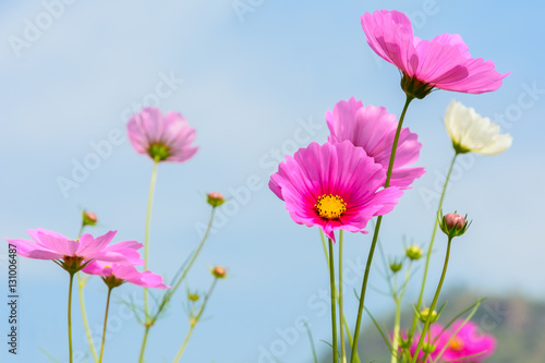 Wall mural beautiful of cosmos flowers blooming with blue sky