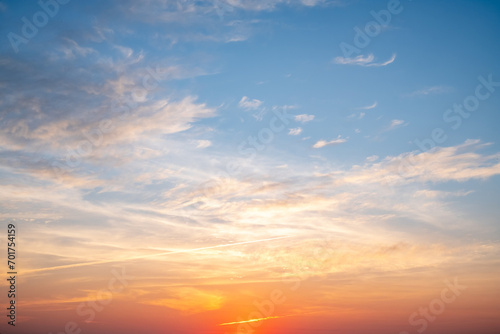 Beautiful of luxury soft gradient orange gold clouds and sunlight on the blue sky perfect for the baWall mural