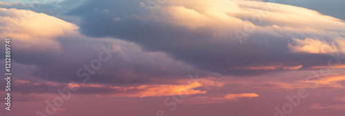 Wall mural beautiful orange sunset clouds on the blue sky. sky background.
