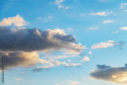 Wall mural beautiful orange sunset clouds on the blue sky. sky background.