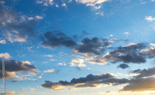The watermark will not be included on Wall mural.: Beautiful orange sunset clouds on the blue sky - sky background -