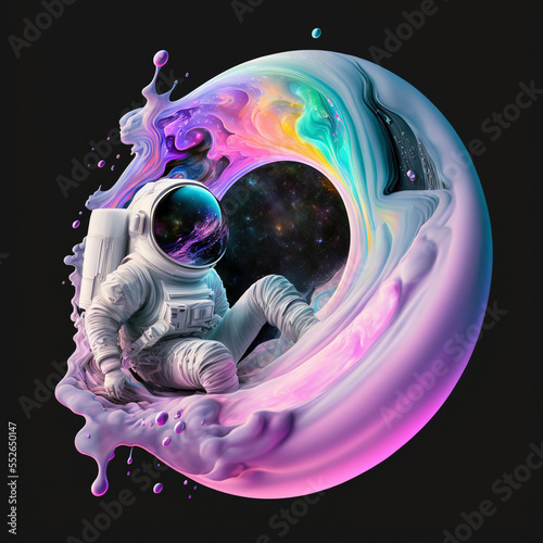 Wall mural beautiful painting of an astronaut in in a colorful bubbles galaxy on a different planet. generative - Wall murals Wall mural beautiful painting of an astronaut in in a colorful bubbles galaxy on a different planet. generative - Wall murals