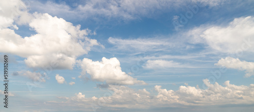 Wall mural beautiful panorama or wide angle sky replacement background with layers of fluffy white cumulus clou