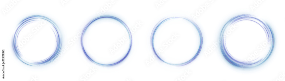 Wall mural : Beautiful round light frame - dynamic blue lines with a glow effect on a white background - png effect