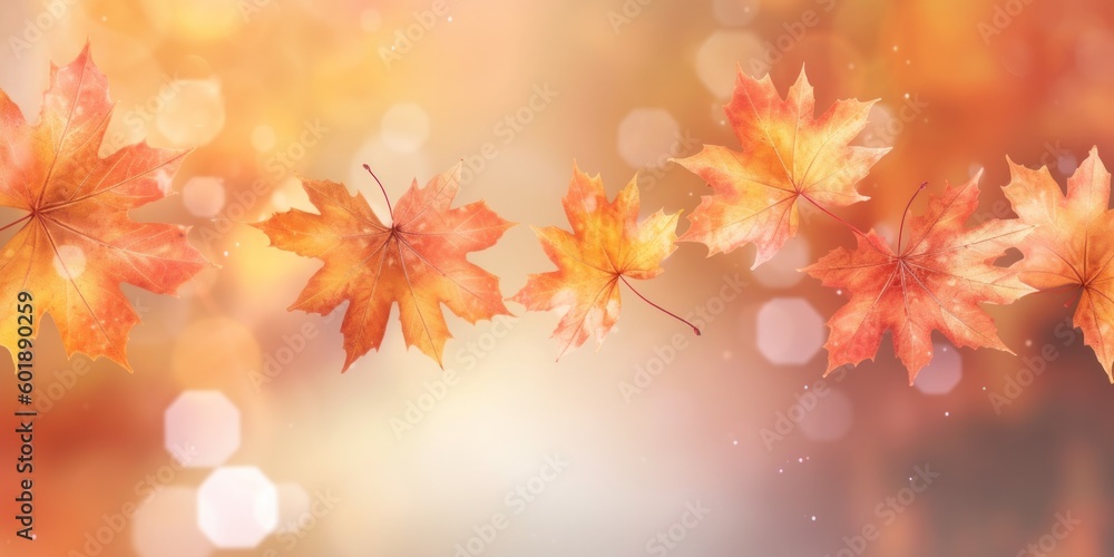 Wall mural beautiful seasonal abstract autumn background with copyspace and falling leaves. generative ai.