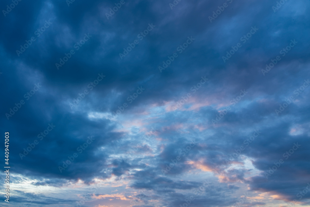 Beautiful sky with clouds at blue hour, sky remplacement, nature backgroundWall mural