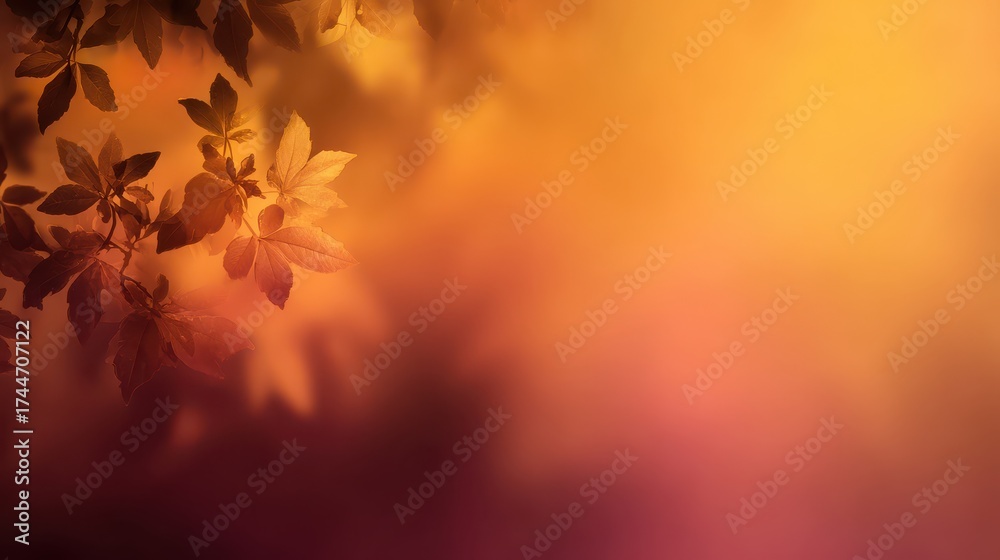 The watermark will not be included on Wall mural.: Beautiful soft blurry abstract gradient background with leaves