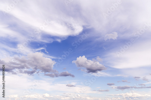 Wall mural : Beautiful soft gentle cloudy blue sky with white light cirrus clouds, abstract background texture
