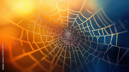 The watermark will not be included on Wall mural.: Beautiful spider web in wild field with dew in morning in spring -