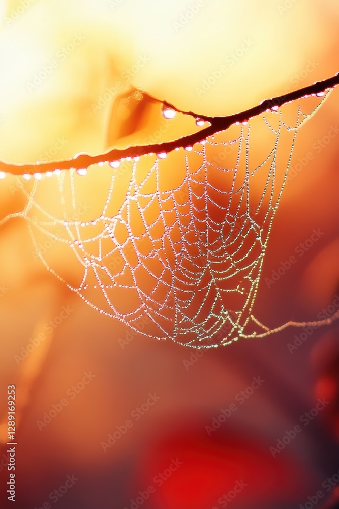 The watermark will not be included on Wall mural.: Beautiful spider web in wild field with dew in morning in spring -