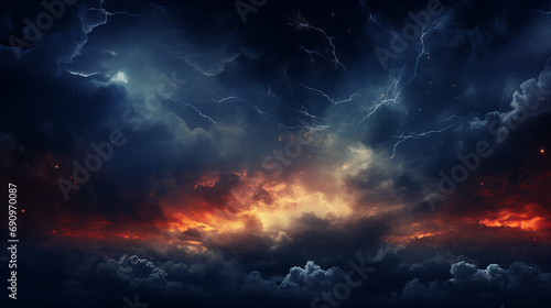 The watermark will not be included on Wall mural.: Beautiful sunset in the sky with dark and mysterious looking clouds