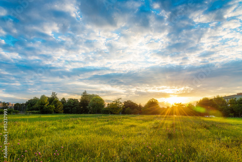 Wall mural beautiful sunset landscape over a meadow in evening - colorful sunlight wallpaper - Wall murals Wall mural beautiful sunset landscape over a meadow in evening - colorful sunlight wallpaper - Wall murals