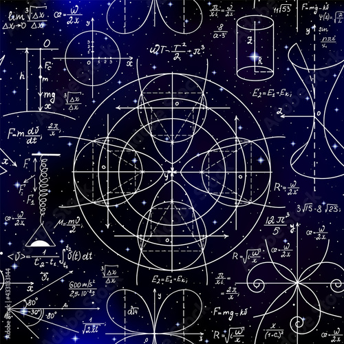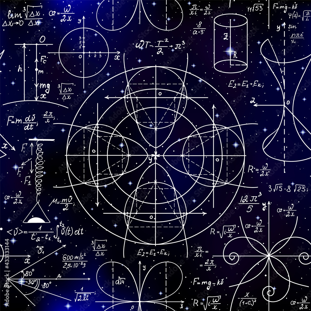 Beautiful vector seamless pattern with mathematical figures, plots and formulas, handwritten on the Wall mural