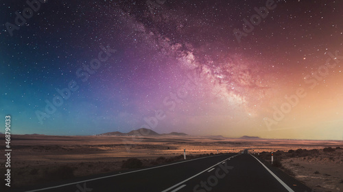 Wall mural : Beautiful view of the empty road with the milky way in the background -