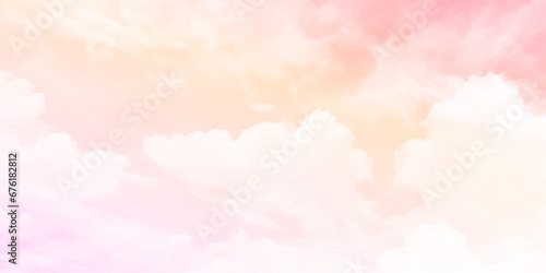 Wall mural beautiful white cloud on pink sky background. pastel pink blue sky with clouds abstract watercolor b