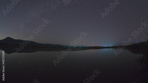 The watermark will not be included on Wall mural.: Beautiful winter scene in timelapse video 4k with mountains in the background - the southern star tra