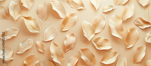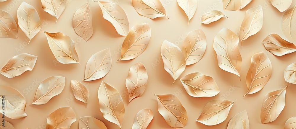 The watermark will not be included on Wall mural.: Beige paper leaves background seen from above - with copy space image - place for adding text or desig