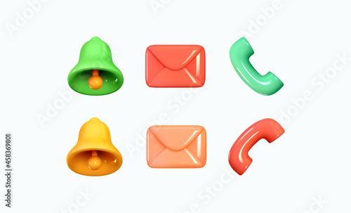 Wall mural bell notification and message symbol, telephone receiver. realistic 3d design of objects. red and gr - Wall murals Wall mural bell notification and message symbol, telephone receiver. realistic 3d design of objects. red and gr - Wall murals