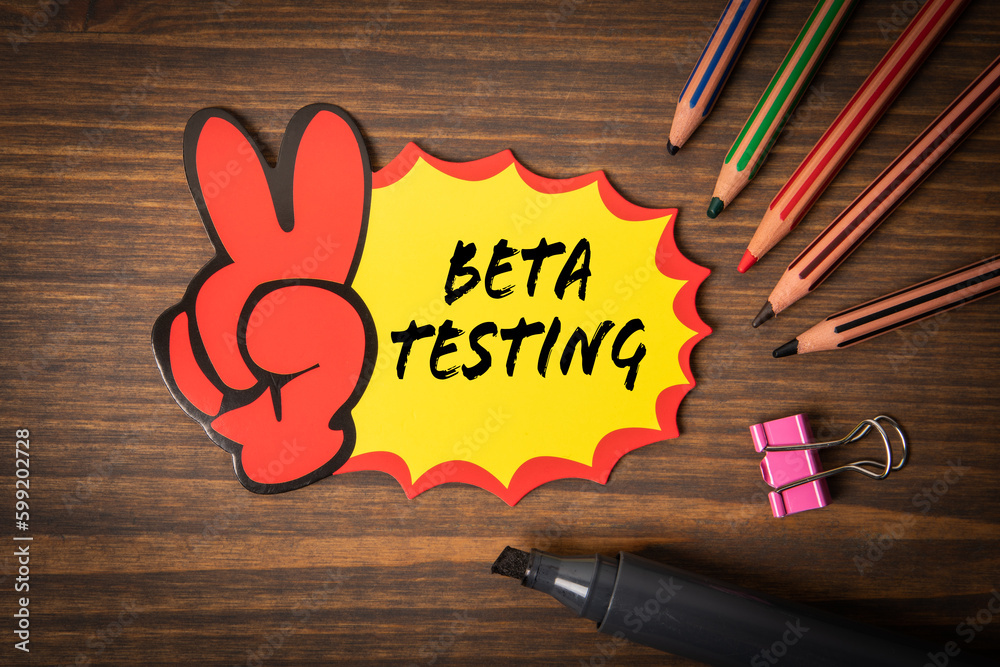 Beta testing - sticky note with text on wood texture backgroundWall mural