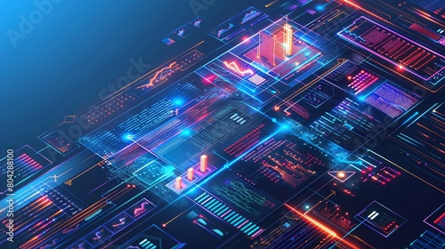 The watermark will not be included on Wall mural.: Big data, tech coding of a fintech programmer writing futuristic technology code on computer at nigh