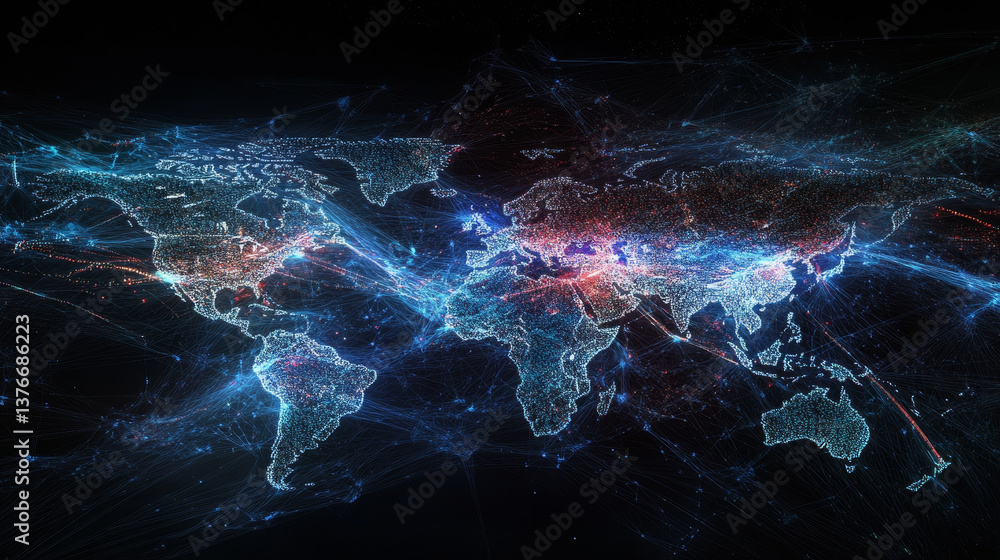 The watermark will not be included on Wall mural.: Big data, wireless information flow - data portal, open data system - global cyberspace concept - high